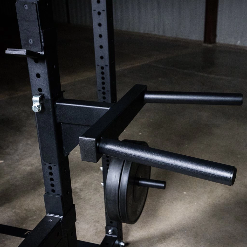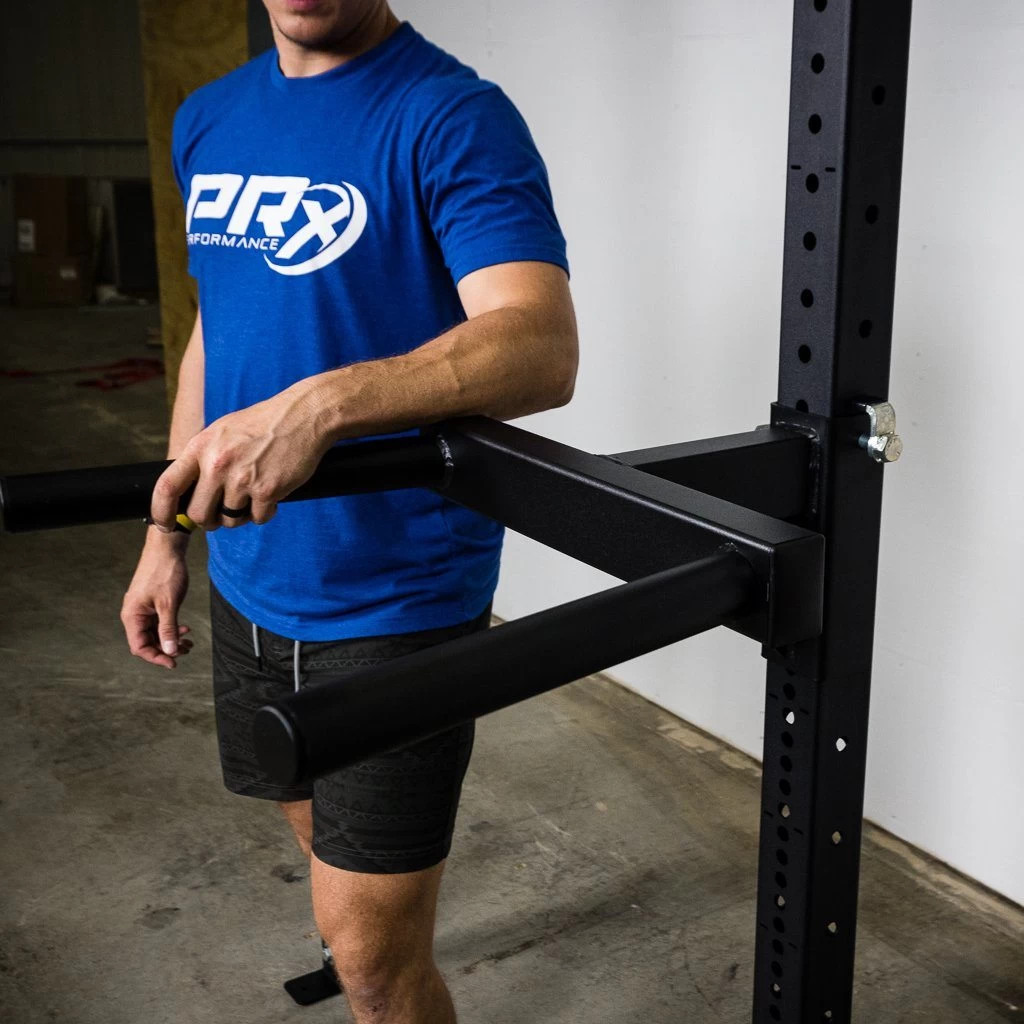 The Build Limitless® Dip Station easily attaches to any upright on your Build Limitless rack and can be set at any height or direction you need. The anti-rattle pin helps tighten your dip station to the rack for a secure and rock-solid pump.