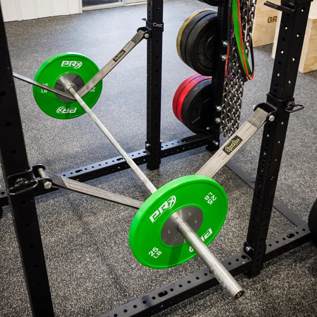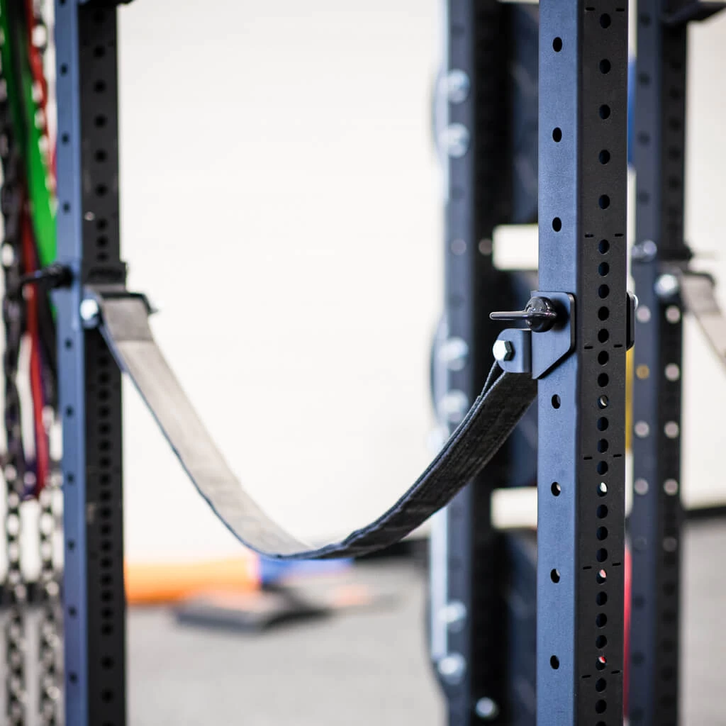The Build Limitless® Safety Spotter Strap System is the ultimate protection for you, your bar, and your rack. These heavy-duty 3/8″ thick reinforced nylon straps from Spud Inc. are secured to the uprights with 1/4″ thick steel brackets, equipped with a 5/8″ diameter pin.