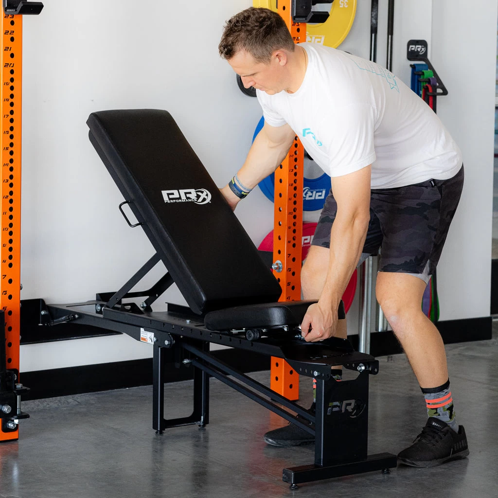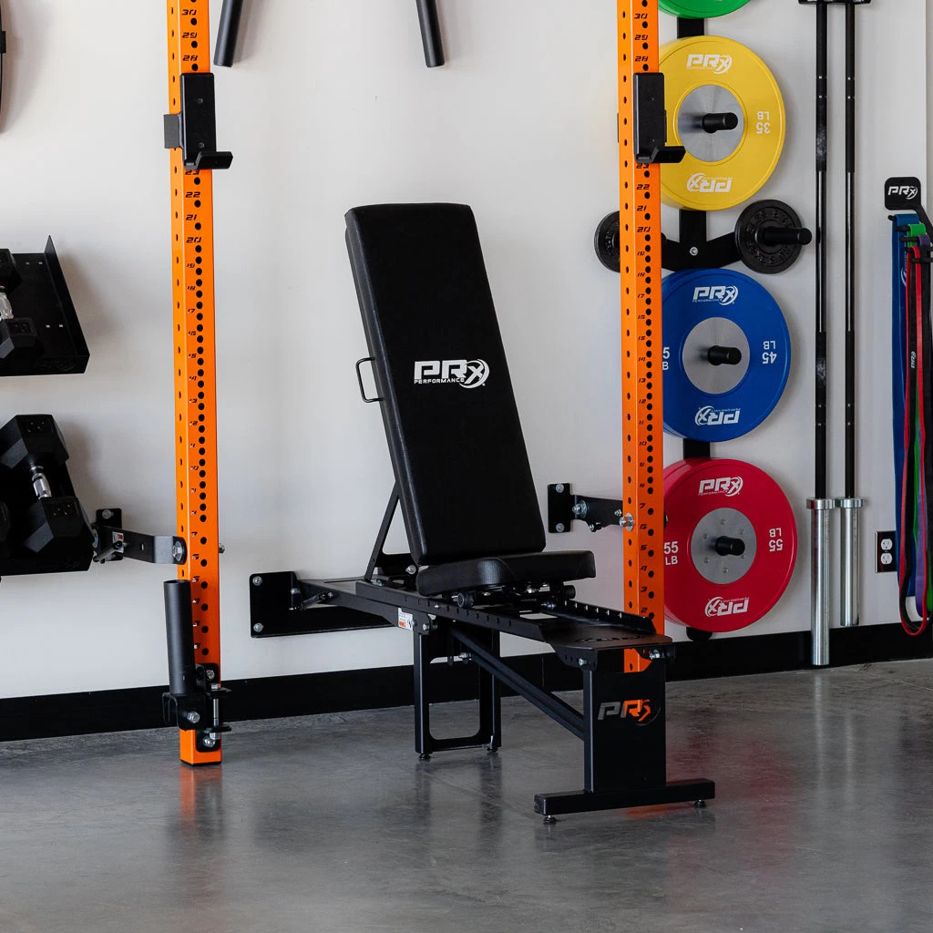This is the bench you need for the space you have. The PRx Profile® Incline Folding Bench can adjust to 12 total positions, covering everything from flat to the military press position. Engineered to fit perfectly within all of our wall-mounted racks,* the Incline Folding Bench will line up with your rack, so you can get straight to your lift without fuss, no matter the incline position.