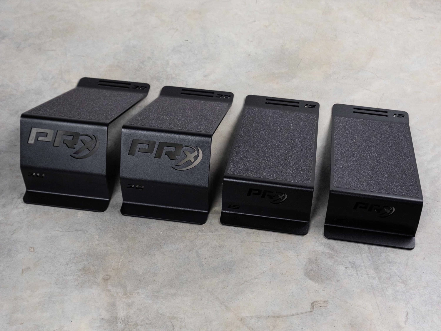 The PRx Squat Wedges are designed for progressive training. Their heavy-duty construction and anti-slip grip tape will help you stay confident while you work on increasing your squat depth, strengthening your knees and ankles, or just plain killing those quads. The simple nesting design allows them to easily be stored when not in use.