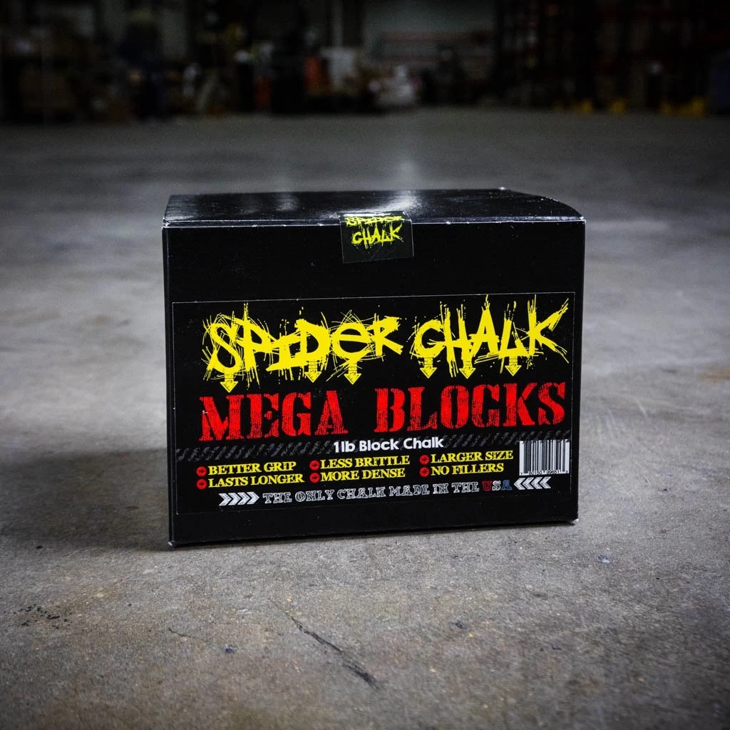 Chalk up! We are proud to offer the only athletic chalk manufactured right here in the United States. Used by top athletes, Spider Chalk is super high-quality chalk that helps with your grip for bench pressing, dead lifts, squats, bar work, rings, and more. Light, easy to apply, and a higher grade than any other chalk out there!